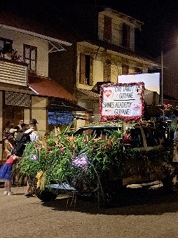 - Les 2 derniers dimanches , c’est la « Grande Parade » d’abord à Kourou et Matouri, puis le dernier dimanche, c’est celle de Cayenne : les groupes défilent sur un tapis rouge où les officiels vont élire le plus beau groupe du Carnaval. Beaucoup de monde, organisation parfois un peu bordélique, mais de très beaux costumes et de belles présentations